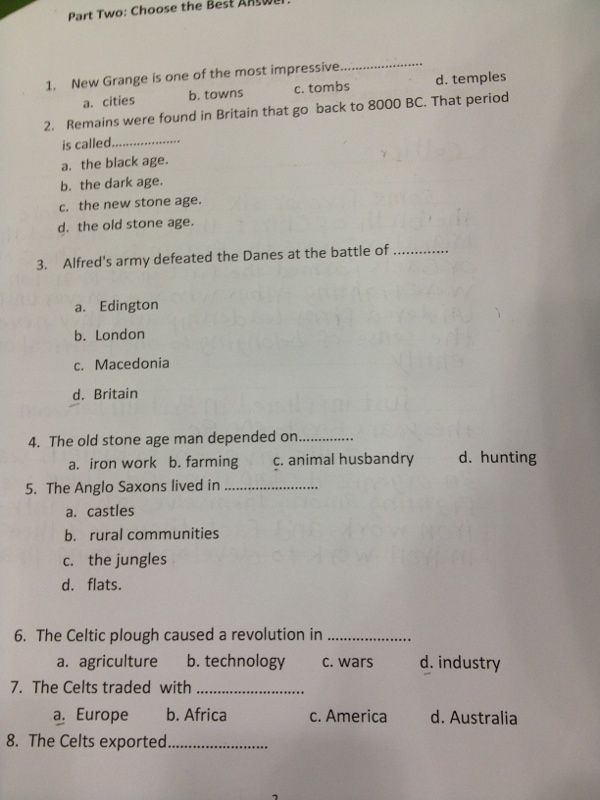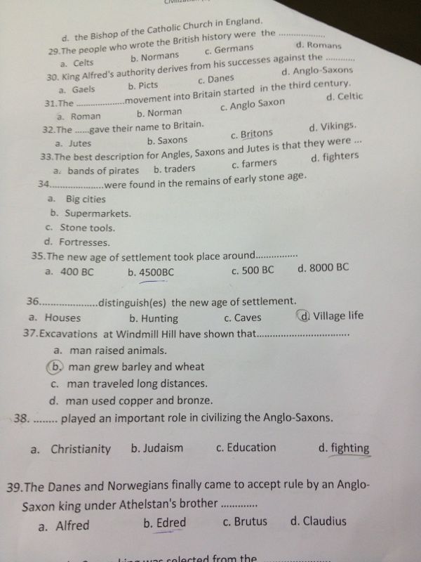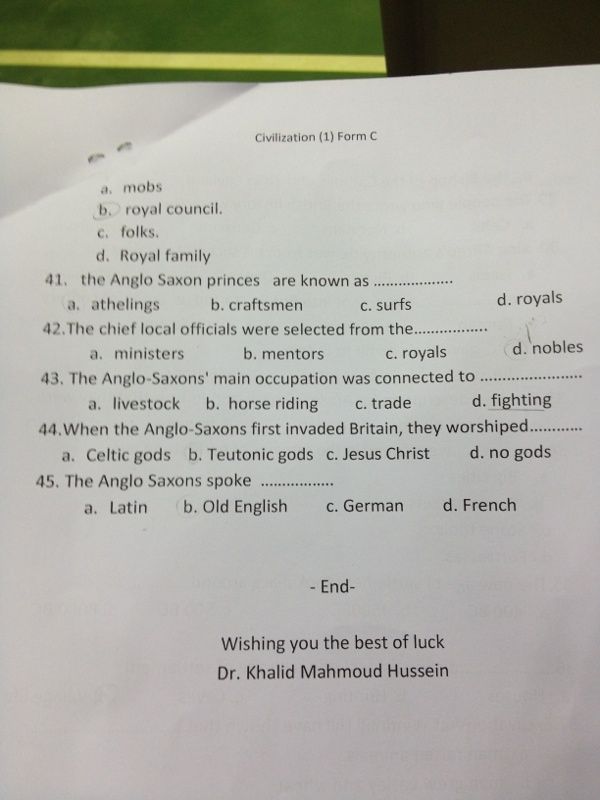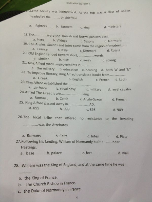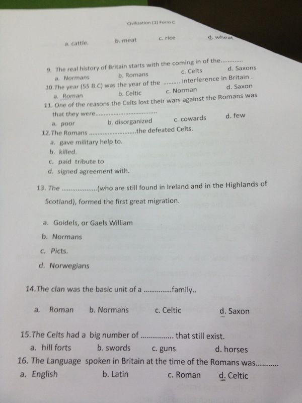 اسئلة اختبار مادة حضارة 1 نموذج (C)
