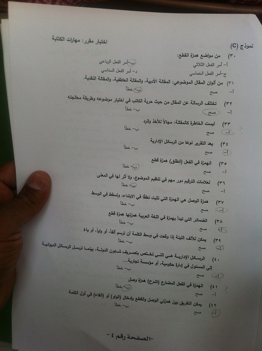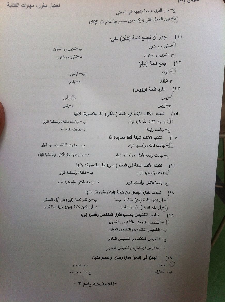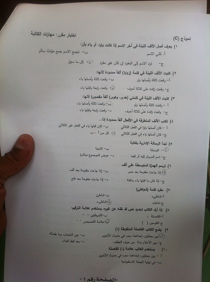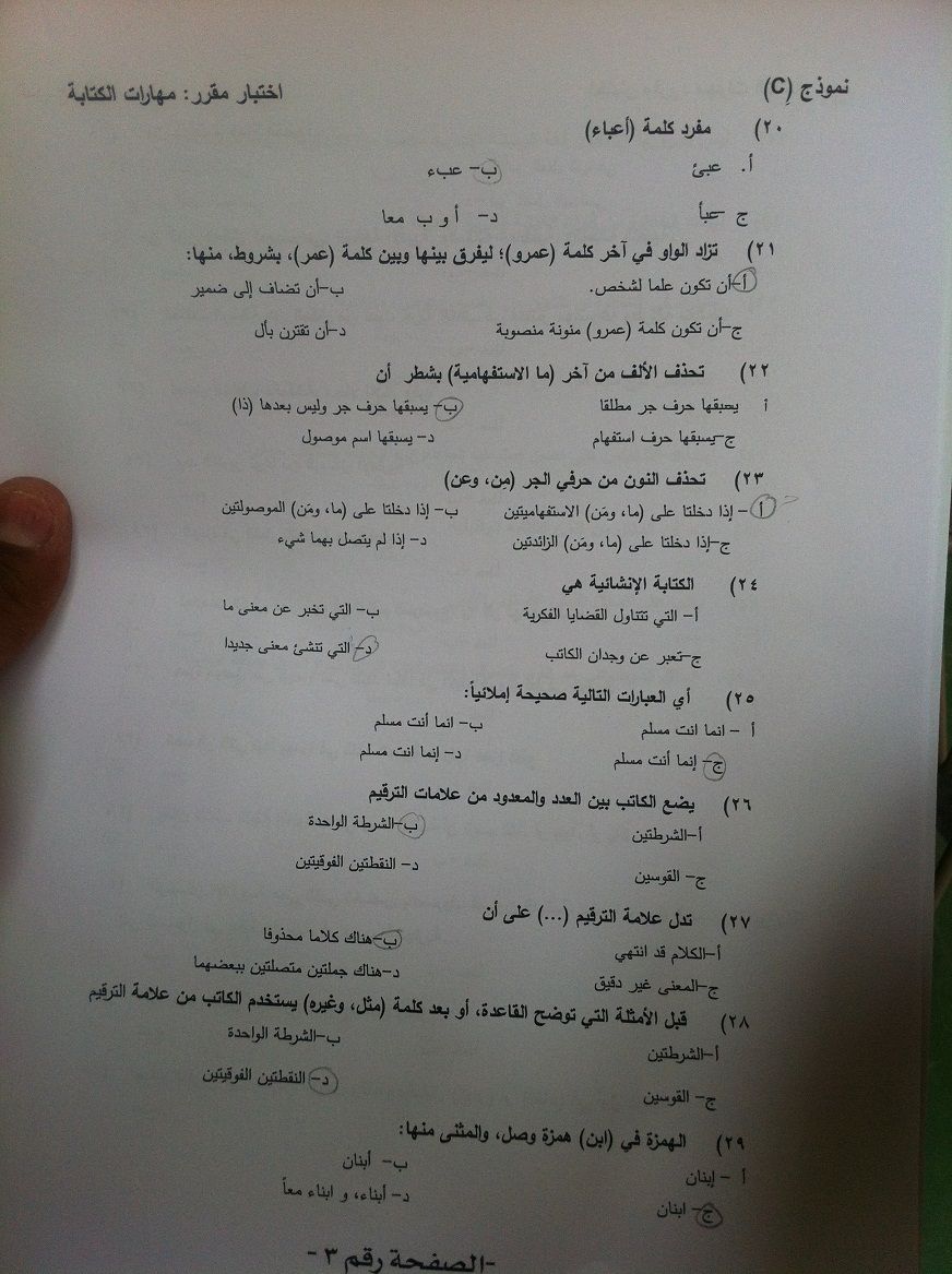 اسئلة اختبار مادة مهارات الكتابة نموذج (C)