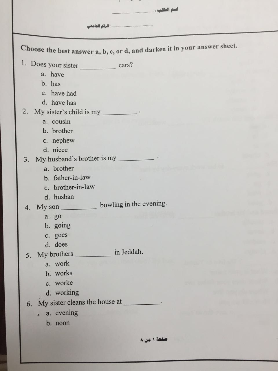 اسئلة مادة اللغة الإنجليزية 102 الفصل الأول 1437هـ
