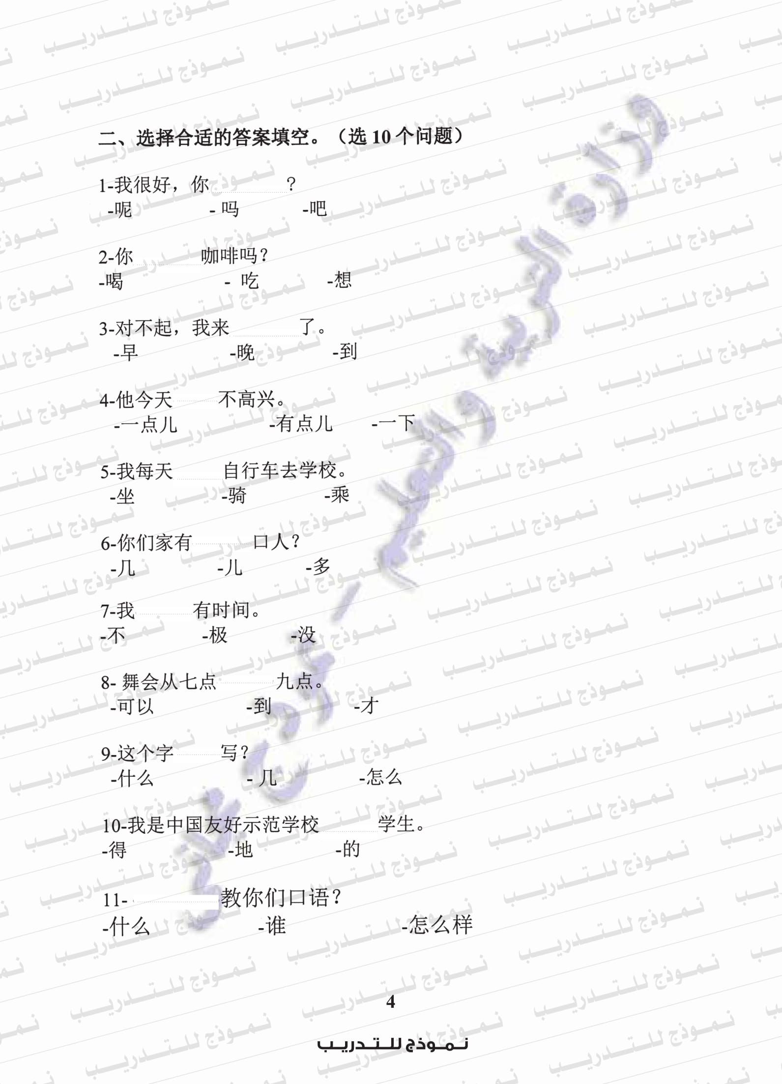 اختبار نهائي لمادة اللغة الصينية للصف الثالث الثانوي للعام الدراسي 2018 - نموذج ج