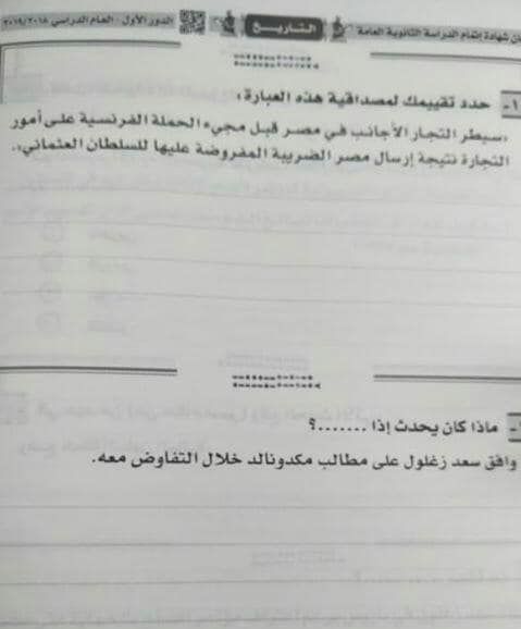 اختبار تجريبي ( استرشادي ) لمادة التاريخ للصف الثالث الثانوي للعام الدراسي 2019 - نموذج 2