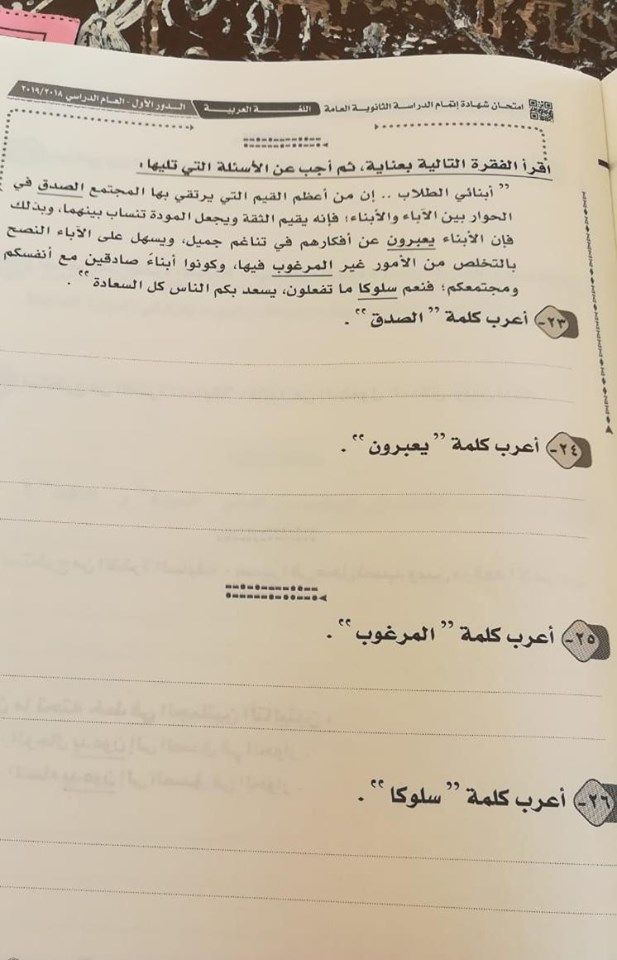 اسئلة اختبار اللغة العربية الصف الثالث الثانوي 2019 - الفصل الدراسي الثاني 2.jpg