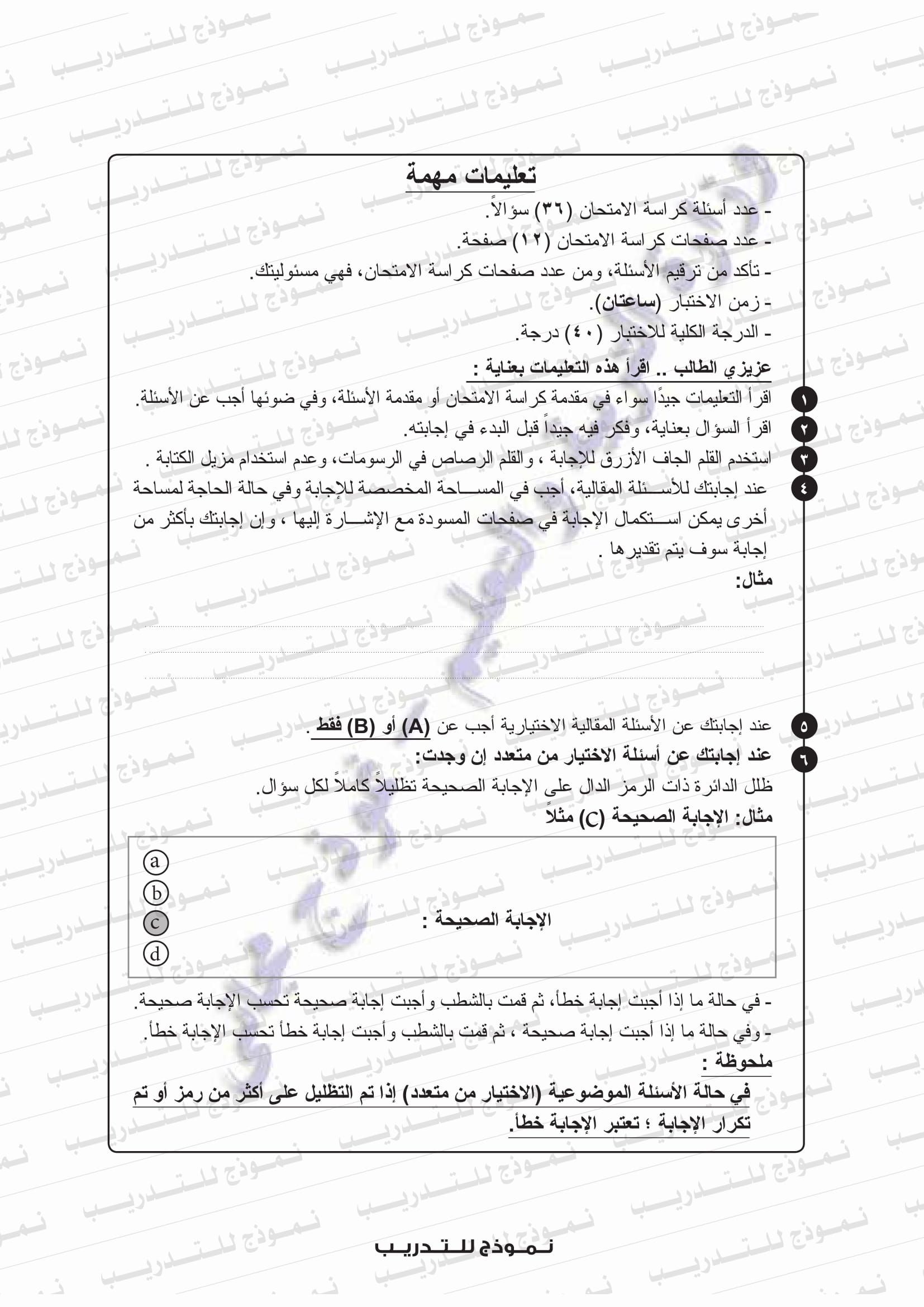 اختبار تجريبي ( استرشادي ) لمادة اللغة الاسبانية للصف الثالث الثانوي للعام الدراسي 2017- نموذج 3