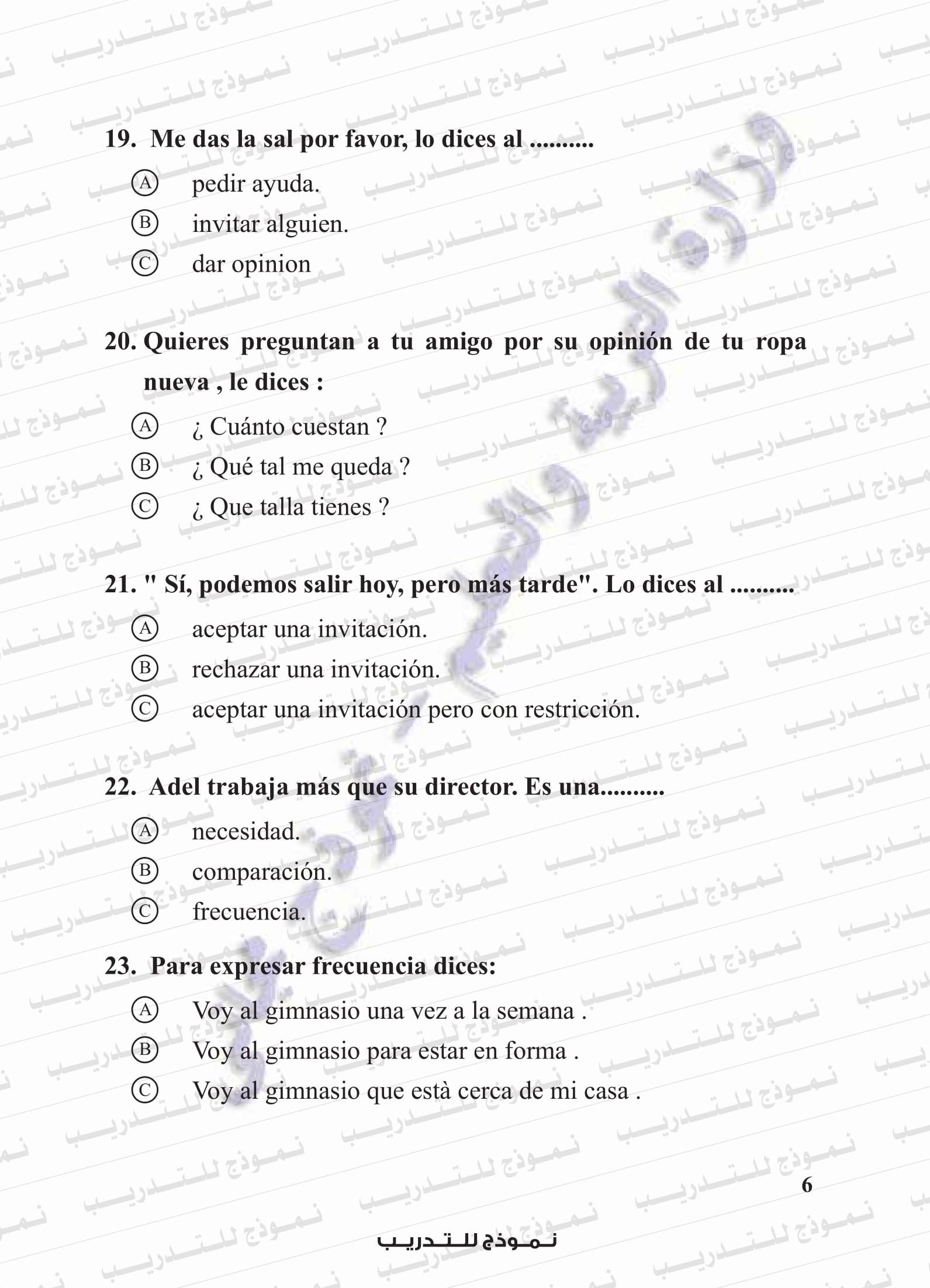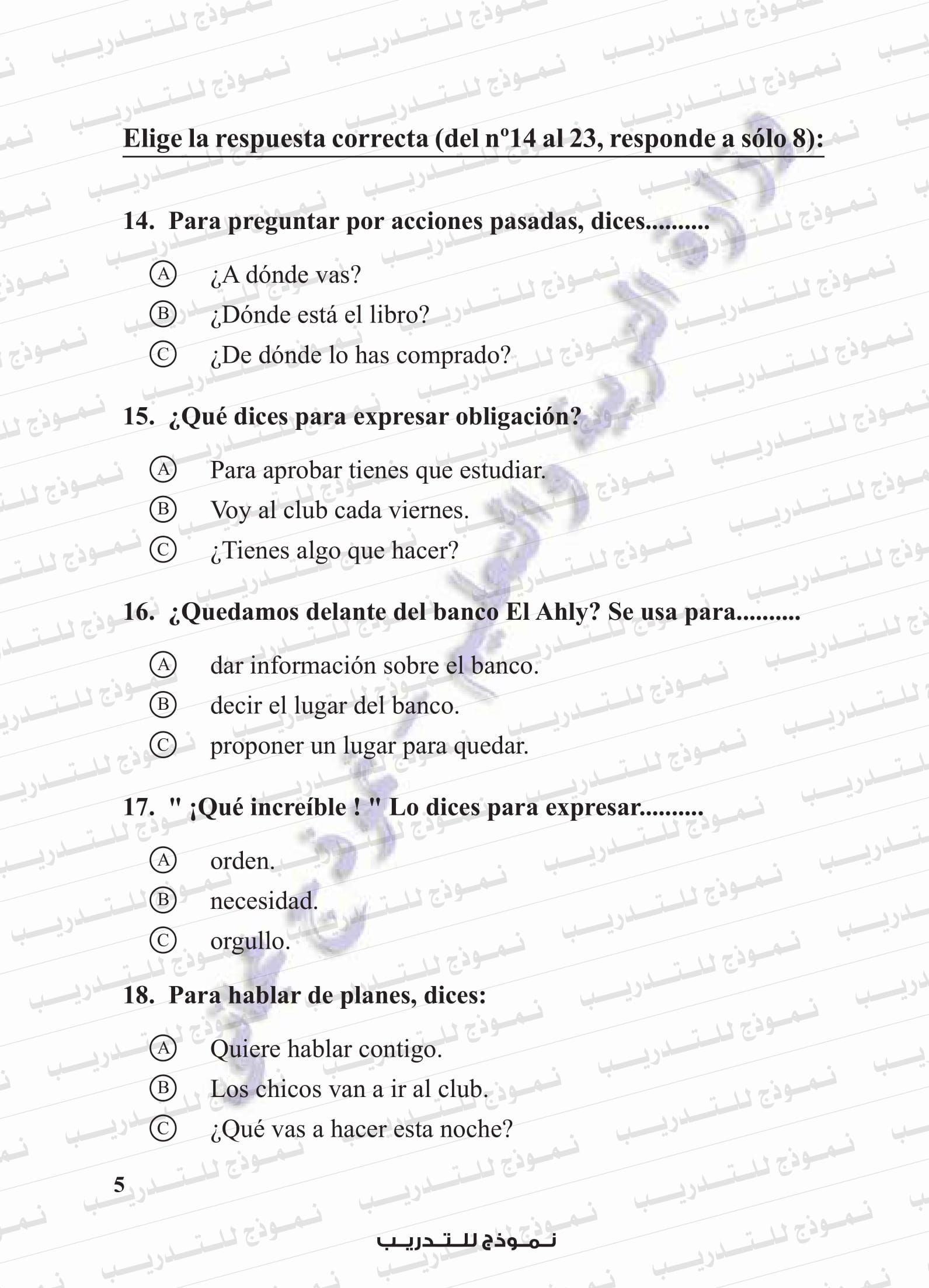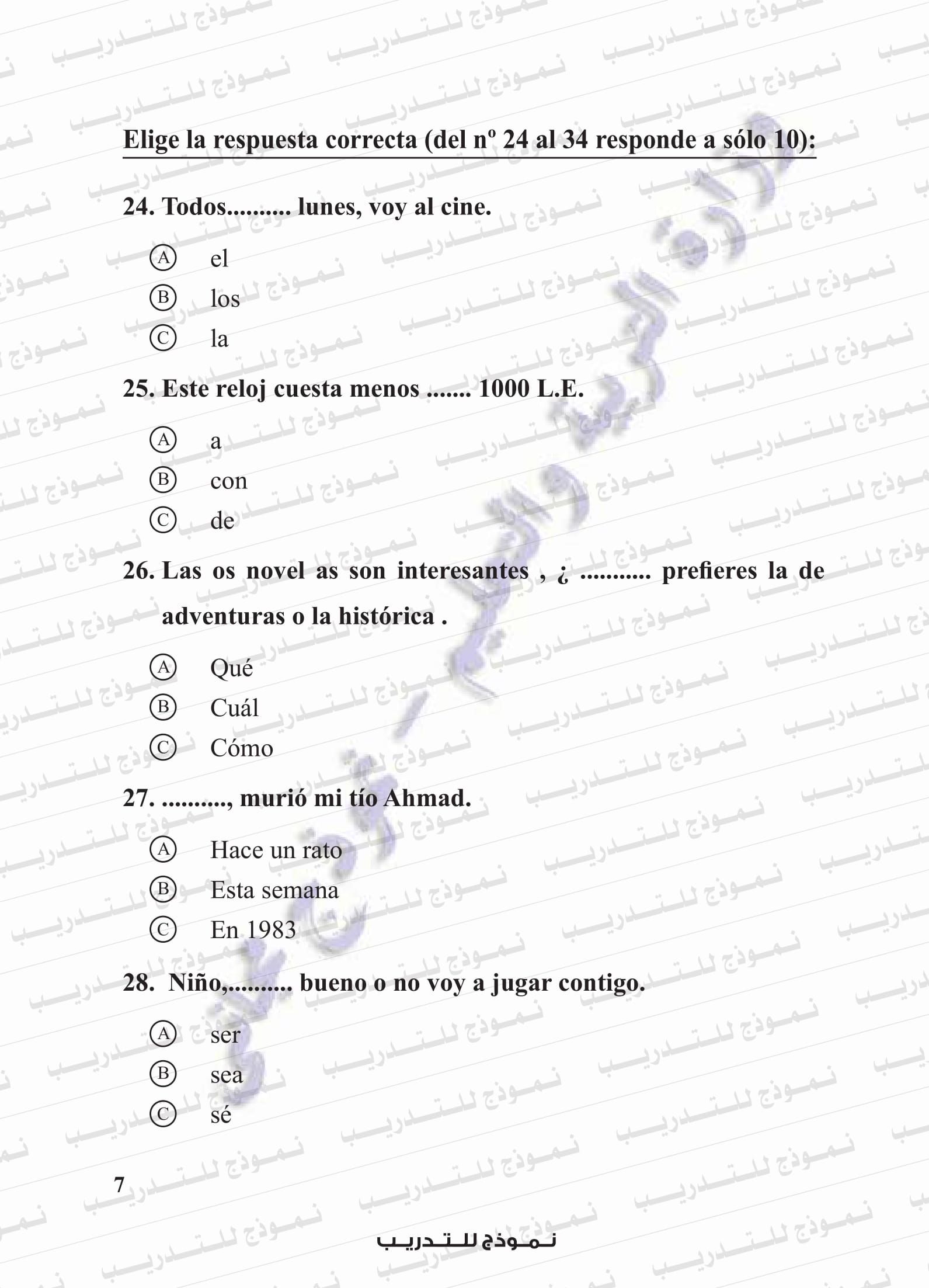 اسئلة اختبار اللغة الاسبانية الصف الثالث الثانوي 2017 - نموذج 3 - الفصل الدراسي الثاني