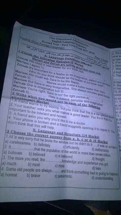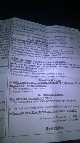 اسئلة اختبار اللغة الانجليزية الصف الثاني الثانوي 2019 - الفصل الدراسي الأول- الجيزة