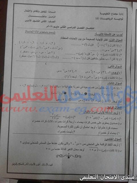 اختبار الرياضيات العامة -القسم الأدبي الصف الثاني الثانوي 2018 - الفصل الدراسي الأول - الغربية.jpg