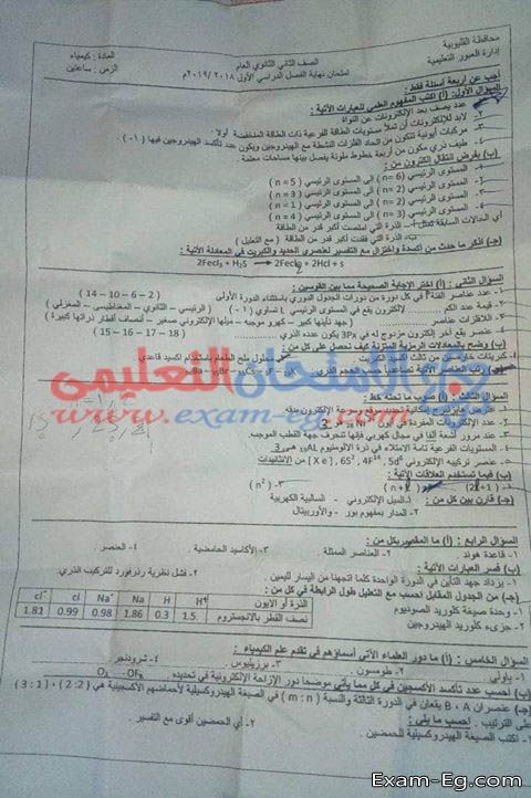 اسئلة اختبار الرياضيات البحتة -القسم العلمي الصف الثاني الثانوي 2017 - الفصل الدراسي الثاني - القليوبية