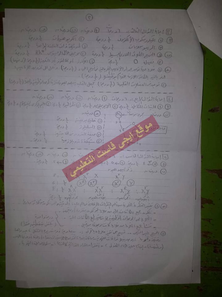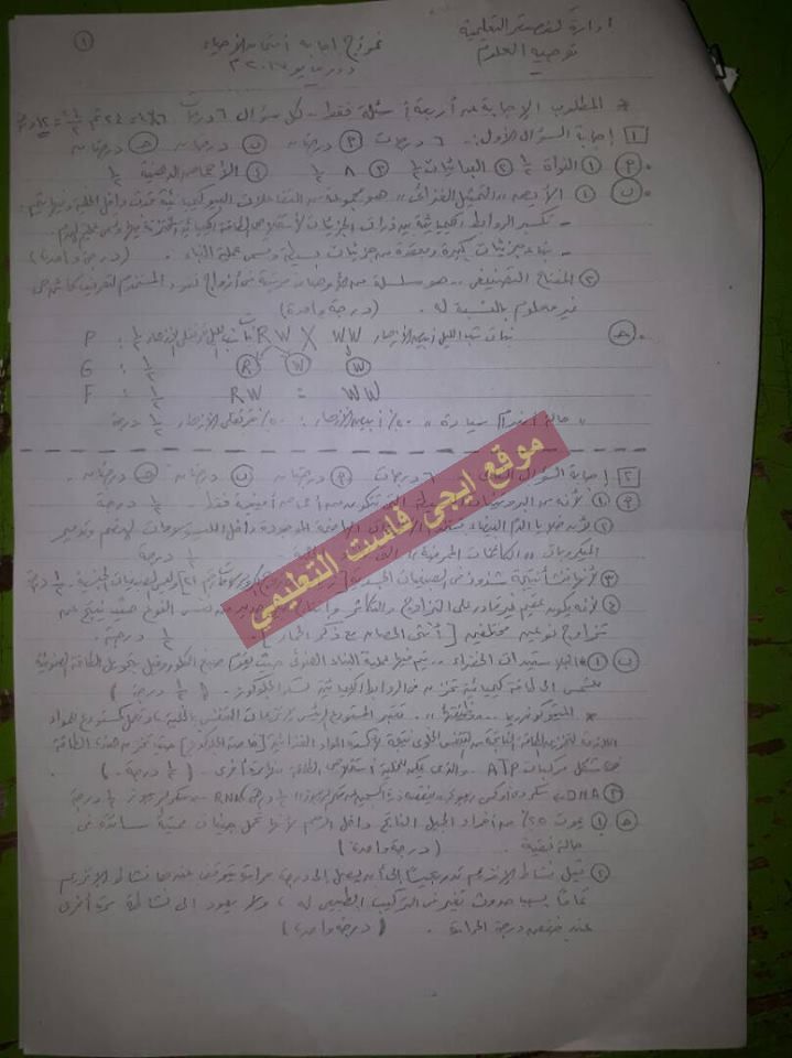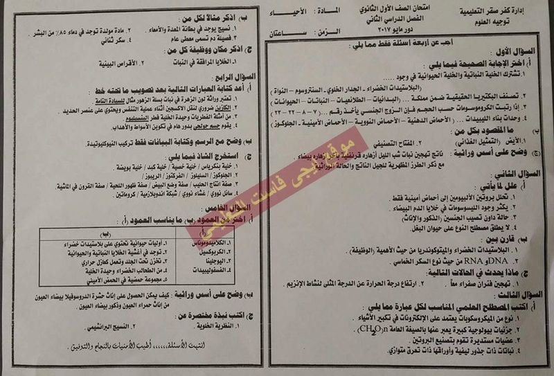 اسئلة اختبار نهائي لمادة الاحياء الصف الاول ثانوي الفصل الدراسي الثاني 2017 - شرق المحلة - الغربية