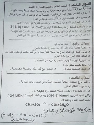 اسئلة اختبار نهائي لمادة الكيمياء الصف الاول ثانوي الفصل الدراسي الاول 2018 - سوهاج