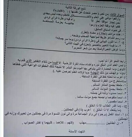 اختبار اللغة العربية الصف الأول الثانوي 2018 - الفصل الدراسي الثاني - الغربية2.jpg