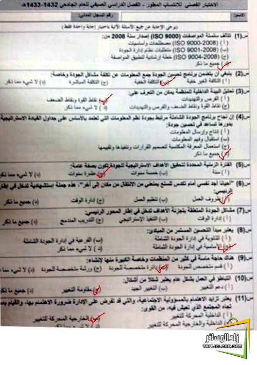 اسئلة مادة إدارة الجودة الشاملة دار 461 الفصل الدراسي الصيفي 1433هـ طلاب