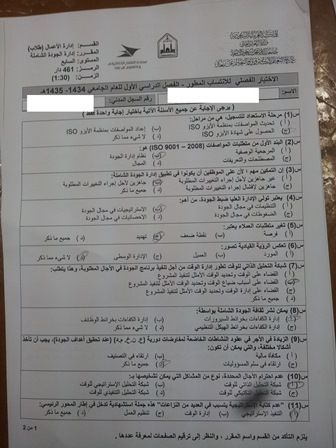 اسئلة مادة إدارة الجودة الشاملة دار 461 الفصل الأول 1435هـ