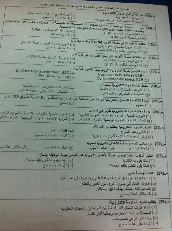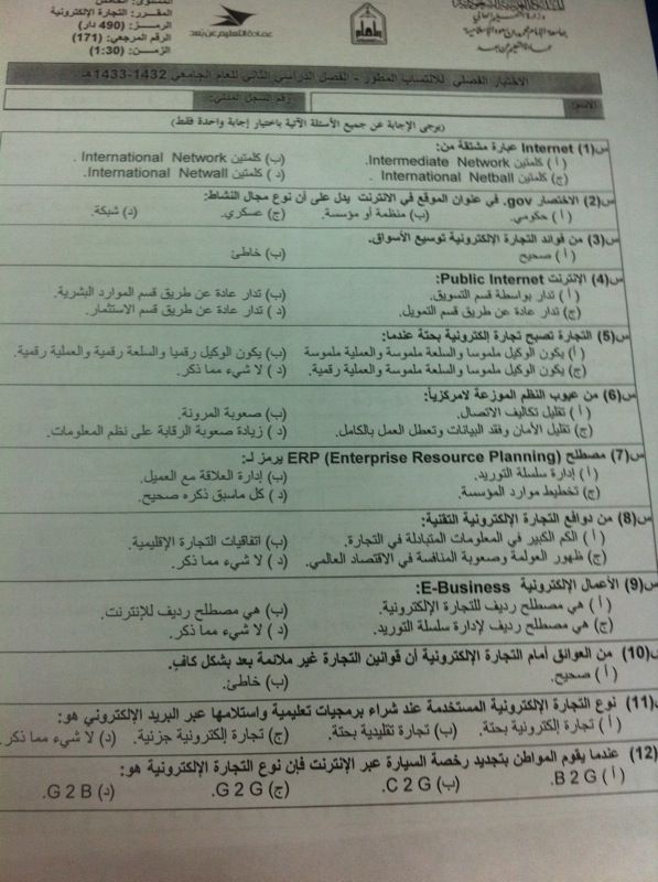 اسئلة مادة التجارة الإلكترونية دار 490 الفصل الثاني 1433هـ