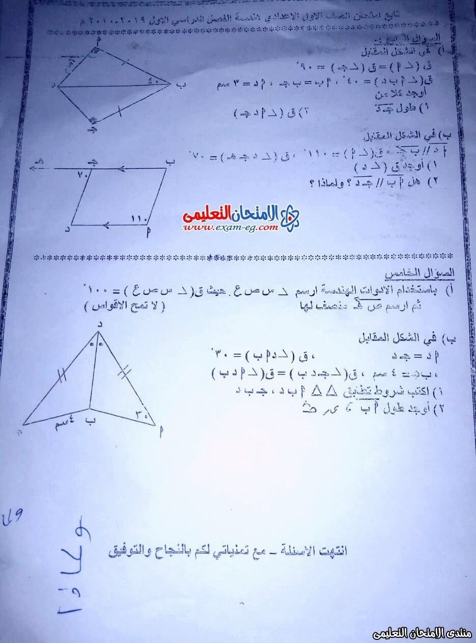 امتحان هندسة أولي إعدادي الفصل الدراسي الأول 2020 ديروط باسيوط