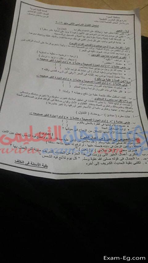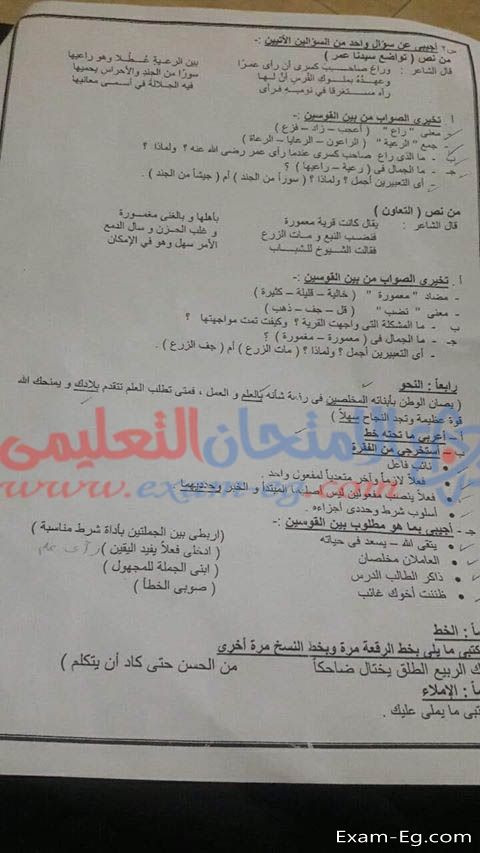 امتحان اللغة العربية للصف الاول الاعدادى الفصل الدراسي الثانى 2019 ادارة بولاق الدكرور