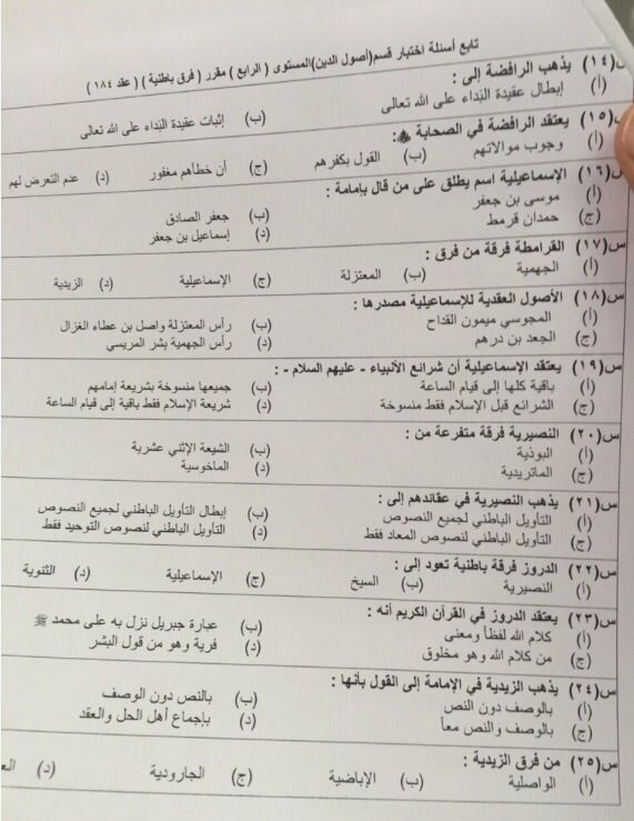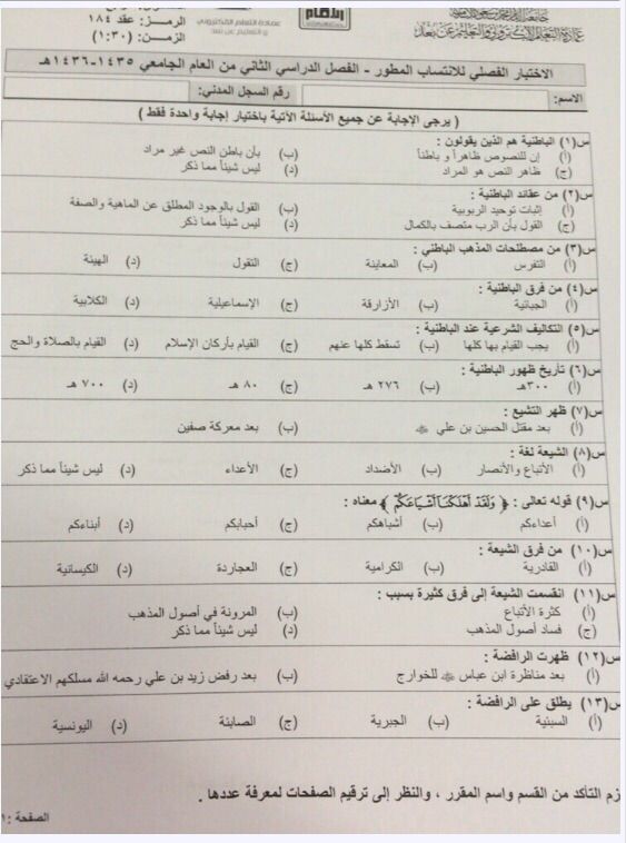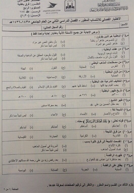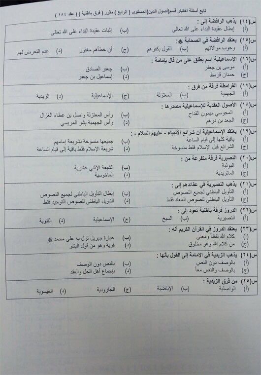اختبار فرق باطنية عقد 184 الفصل الثاني 1436هـ