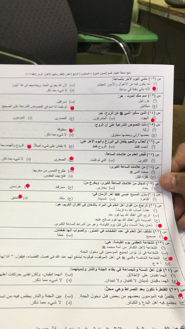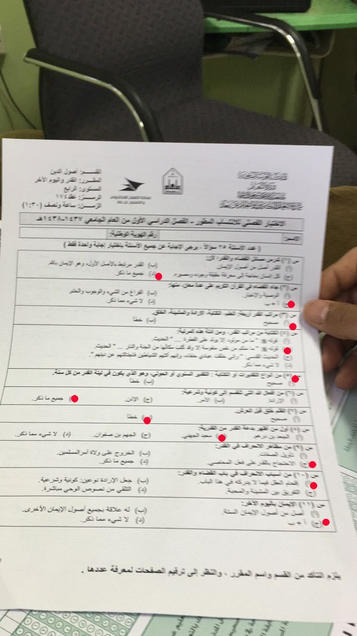 اختبار القدر واليوم الآخر عقد 174 الفصل الأول 1438هـ