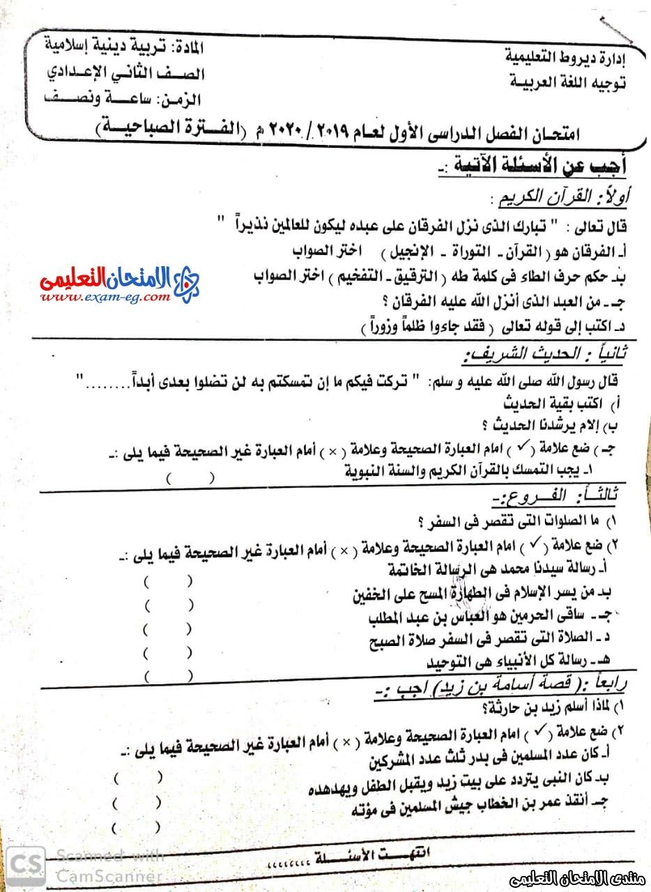 امتحان دين تانية إعدادي الفصل الدراسي الأول 2020 ديروط بأسيوط