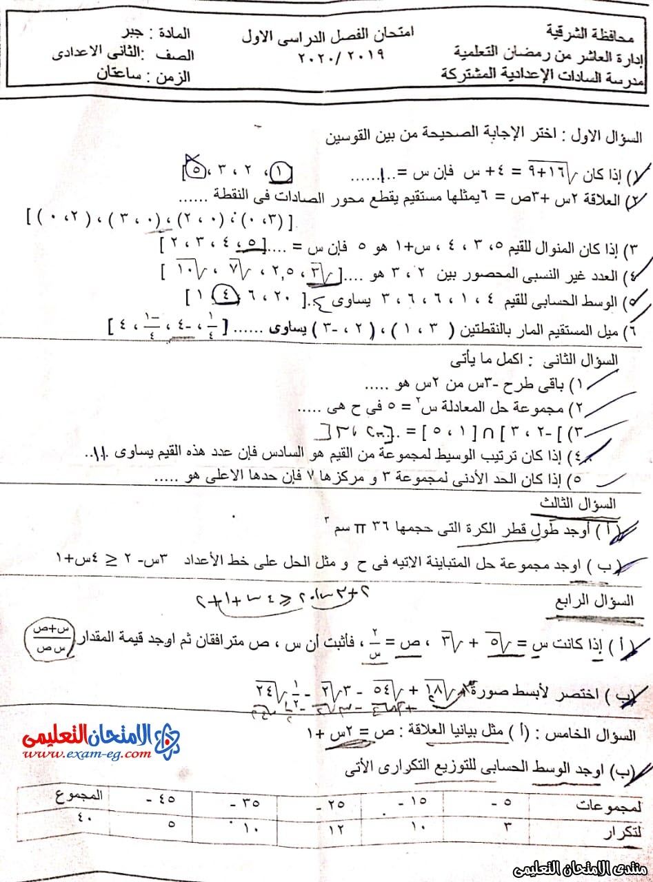 امتحان هندسة تانية اعدادى الفصل الدراسي الاول 2020 العاشر من رمضان بالشرقية