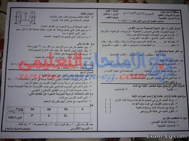 امتحان العلوم للصف الثانى الاعدادى الفصل الدراسي الاول 2019 الرسمى