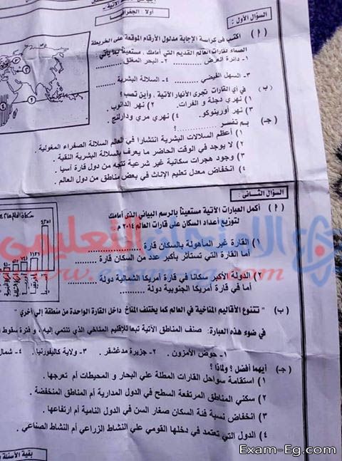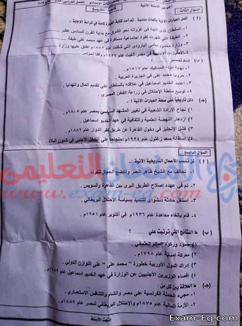 امتحان الدراسات الشهادة الاعدادية الفصل الدراسي الاول دمياط 2019