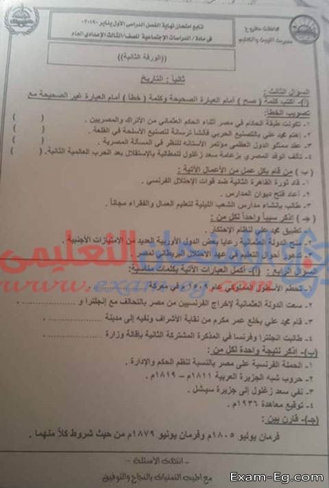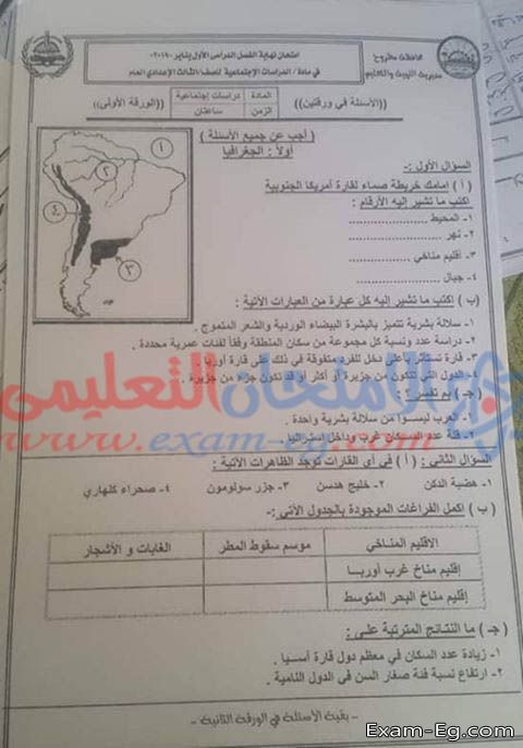 امتحان الدراسات الاجتماعية للشهادة الاعدادية نصف العام 2019 محافظة مطروح