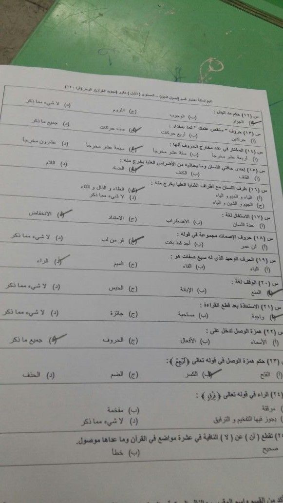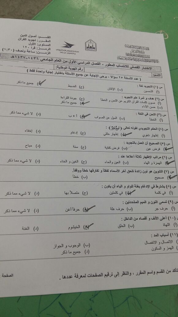 اختبار تجويد القران 120 الفصل الدراسي الاول 1437هـ