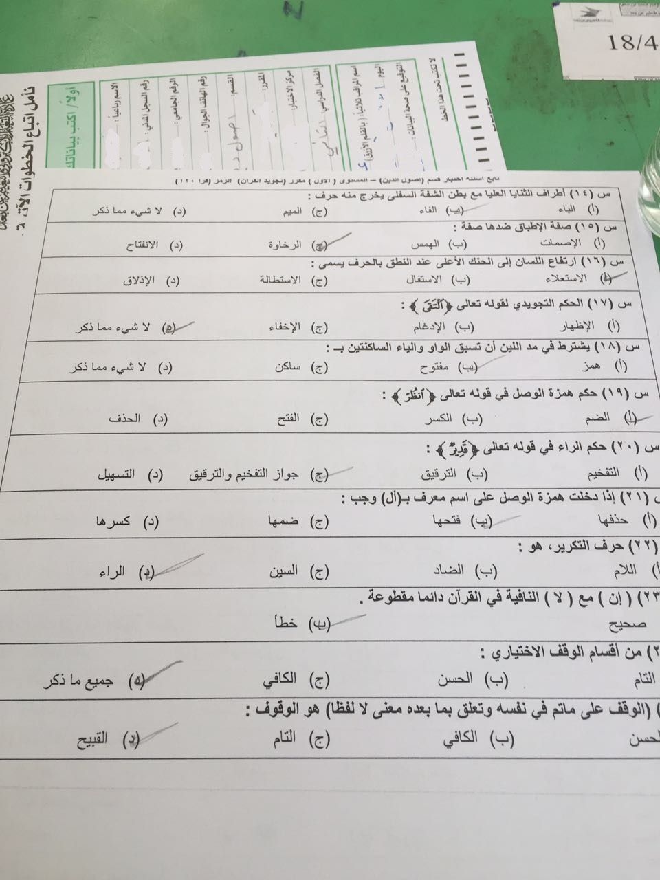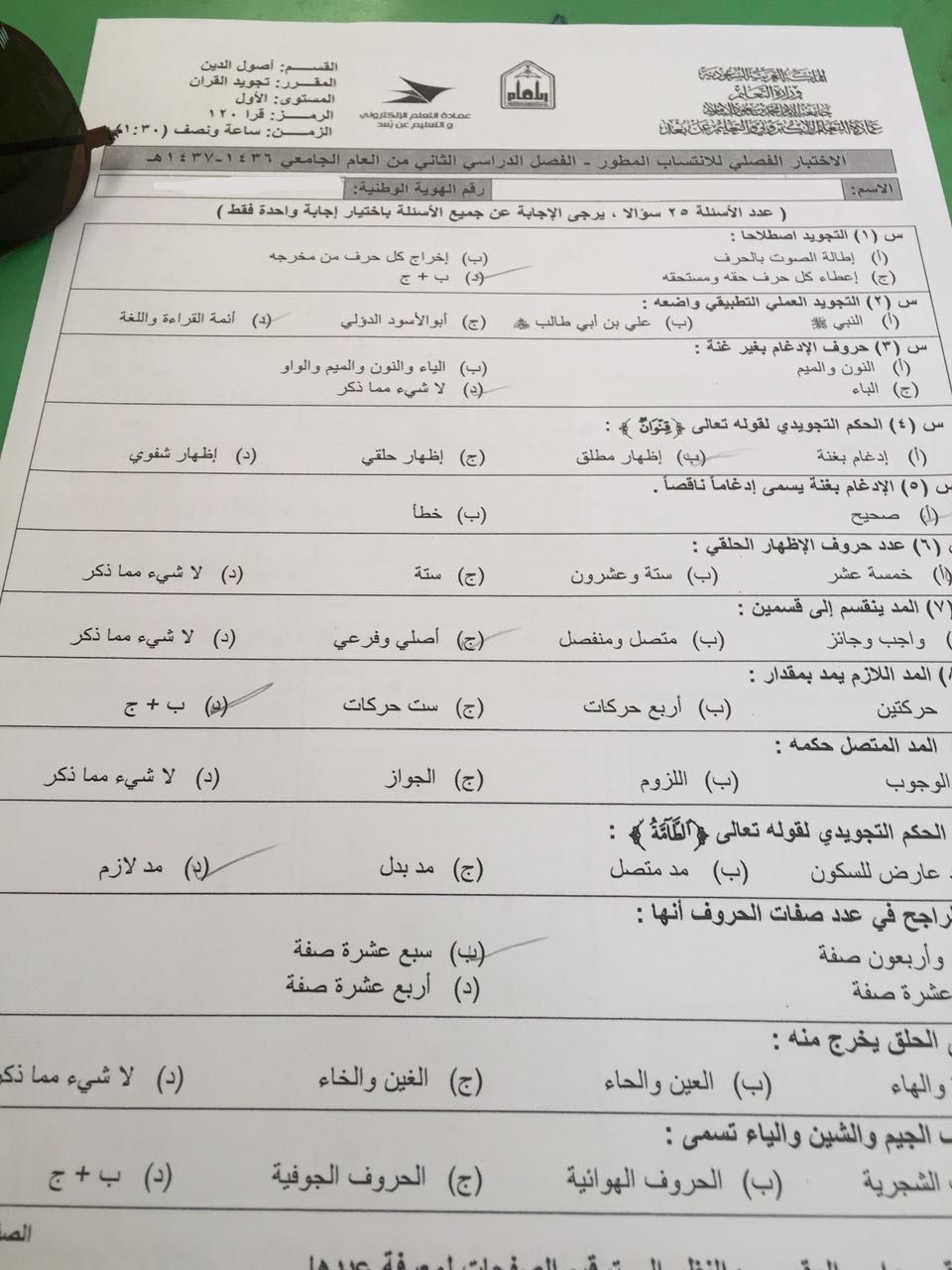 اختبار تجويد القرآن قرا 120 الفصل الثاني 1437هـ