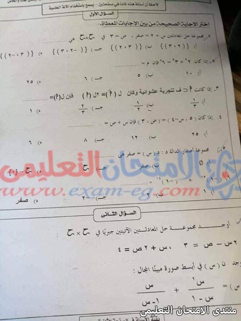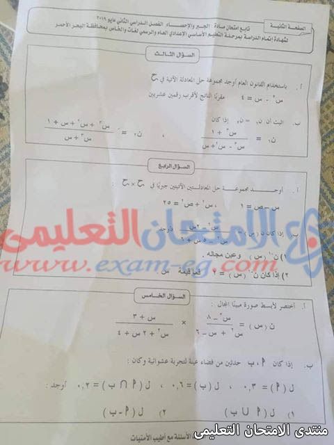 امتحان الجبر للثالث الاعدادى الفصل الدراسي الثانى 2019 محافظة البحر الاحمر