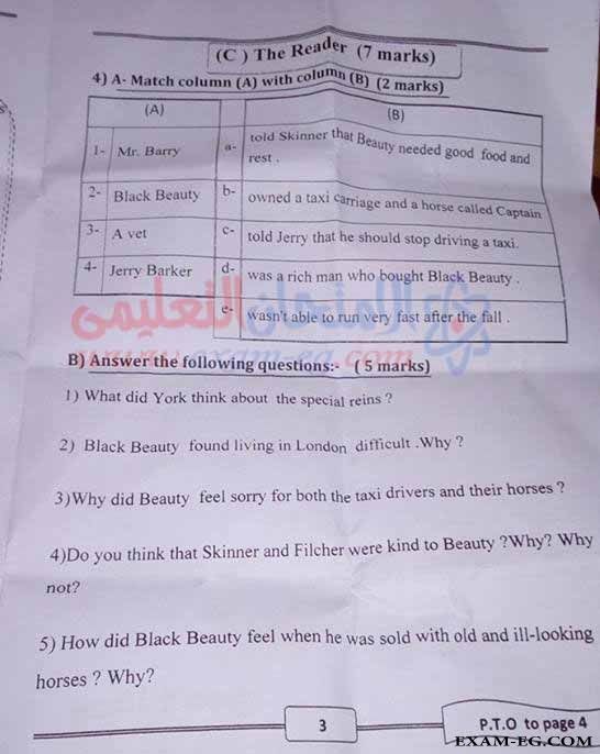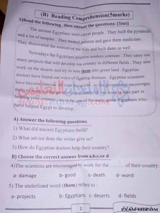 امتحان اللغة الانجليزية للصف الثالث الاعدادى الترم الثانى 2018 محافظة المنيا