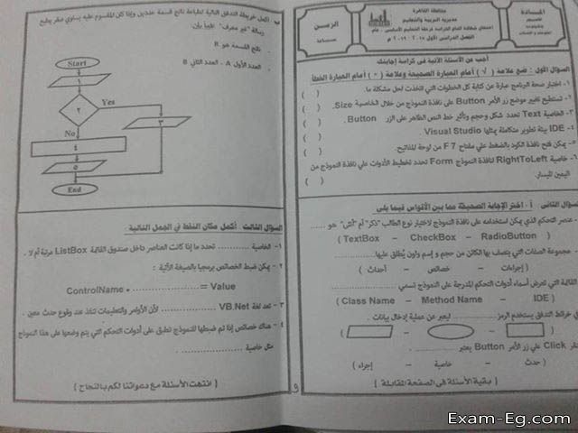 امتحان الكمبيوتر للثالث الاعدادى الفصل الدراسي الثانى 2019 محافظة القاهرة