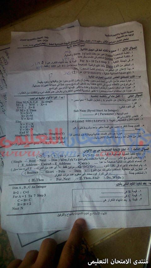 امتحان الكمبيوتر للثالث الاعدادى الترم الثانى 2019 محافظة الدقهلية
