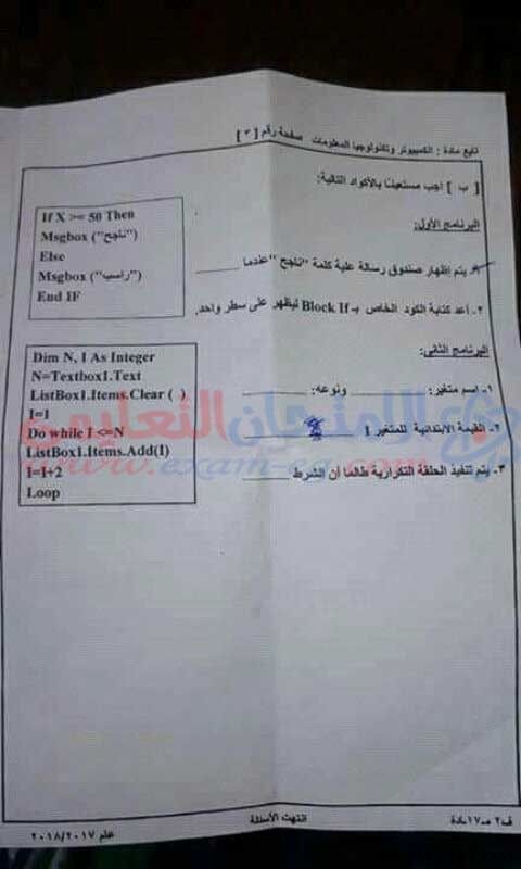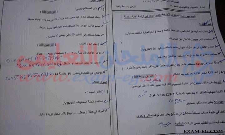 امتحان الحاسب الالى للصف الثالث الاعدادى الفصل الدراسي الثانى 2018 محافظة السويس2.jpg