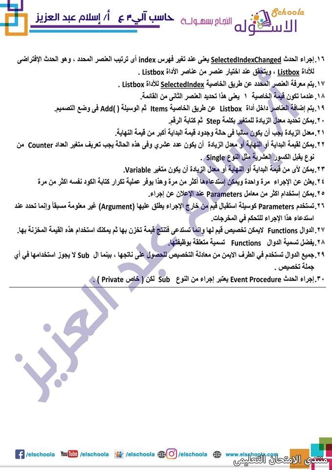 ملخص الجزء النظرى الحاسب الالى للصف الثالث الاعدادى الفصل الدراسي الثانى
