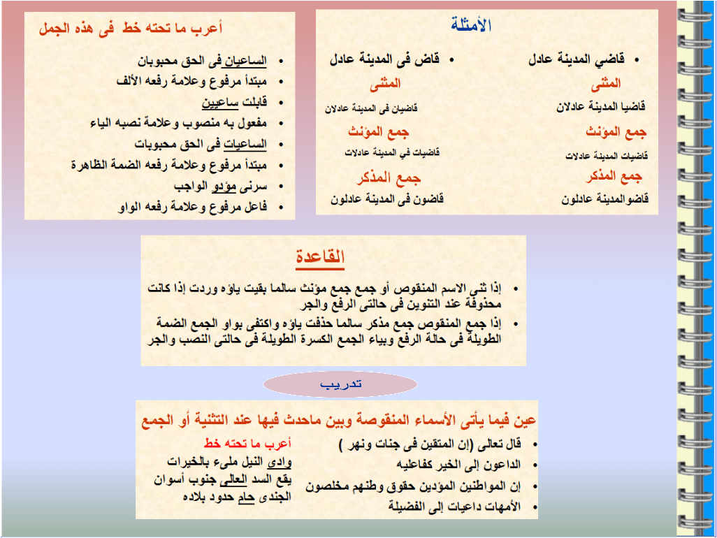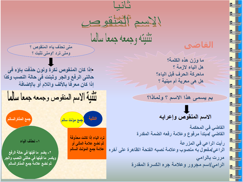 بالصور شرح الاسم المنقوص وتثنيته وجمعه جمعا سالما اولى ثانوي الفصل الدراسي الثاني
