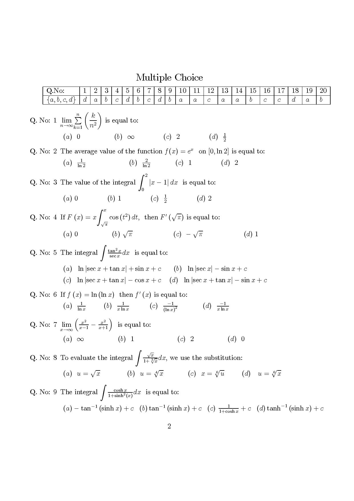 اسئلة اختبار نهائي ريض 106 حساب التكامل الفصل الثاني 1432هـ