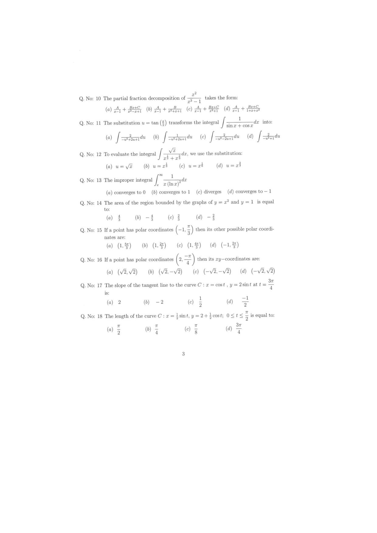 اسئلة اختبار نهائي ريض 106 حساب التكامل الفصل الصيفي 1431هـ