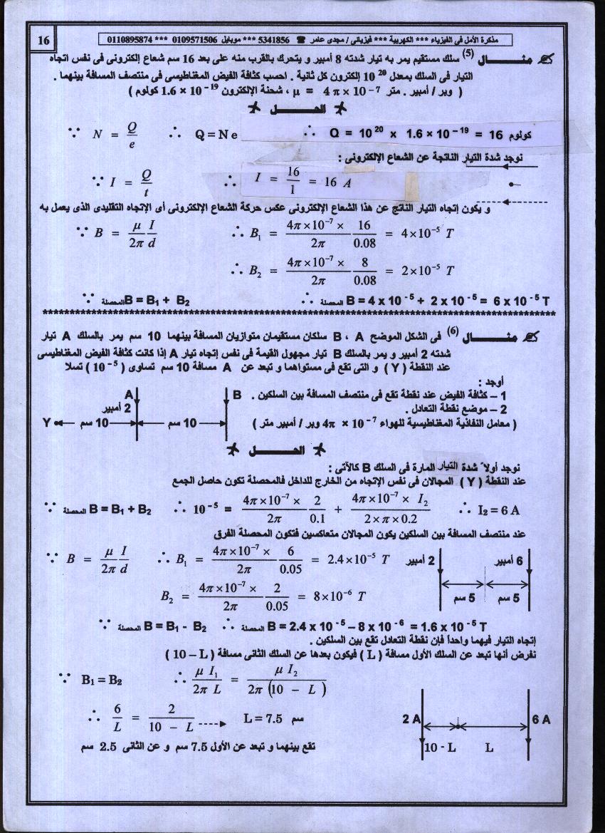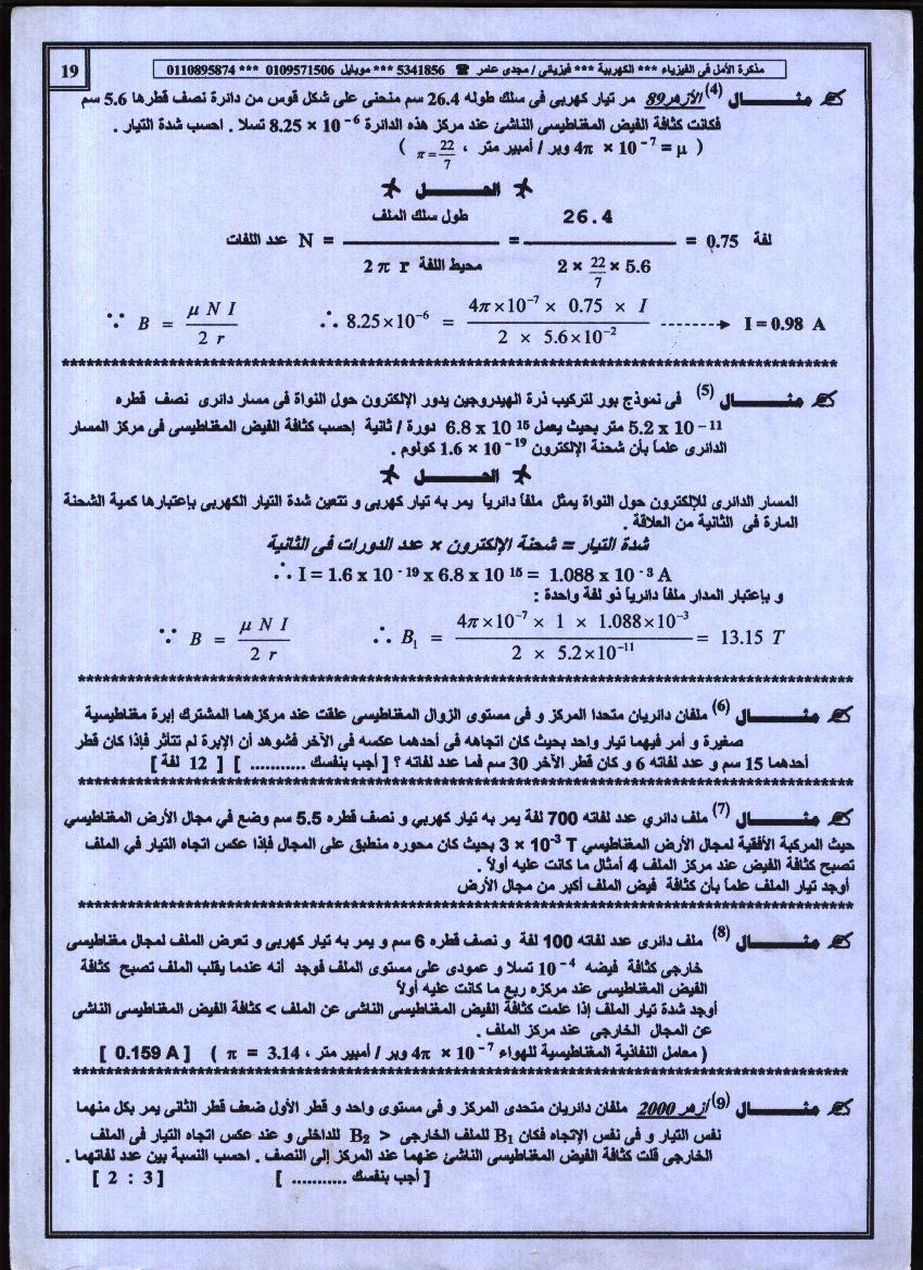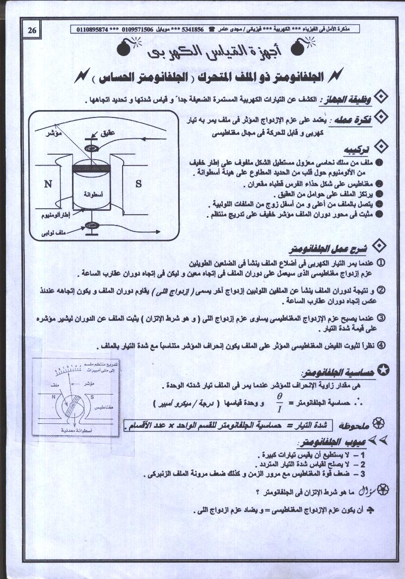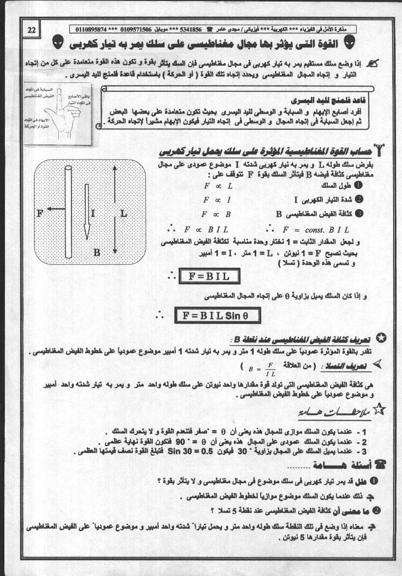 ملزمة الأمل لشرح منهج الفيزياء لثالثة ثانوى الفيزيا الكهربائيه - الثانوىة العامة - الصف الثالث الثانوى
