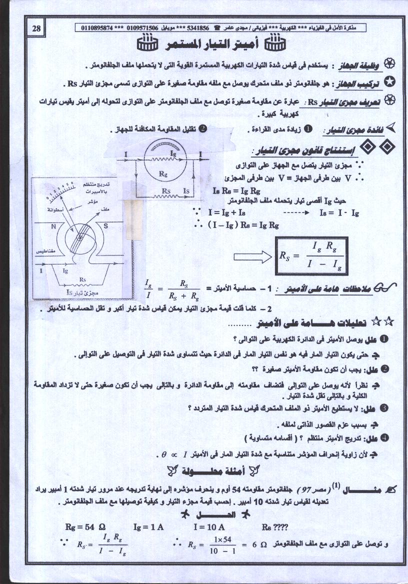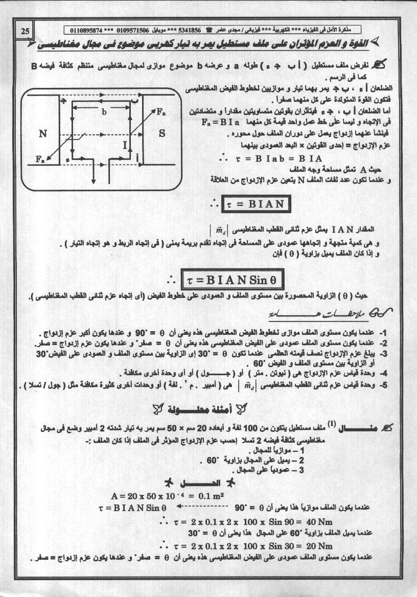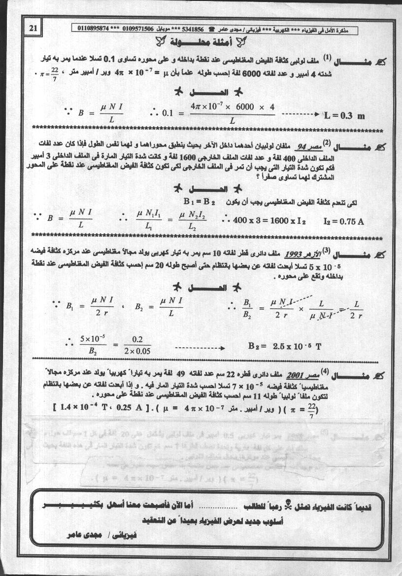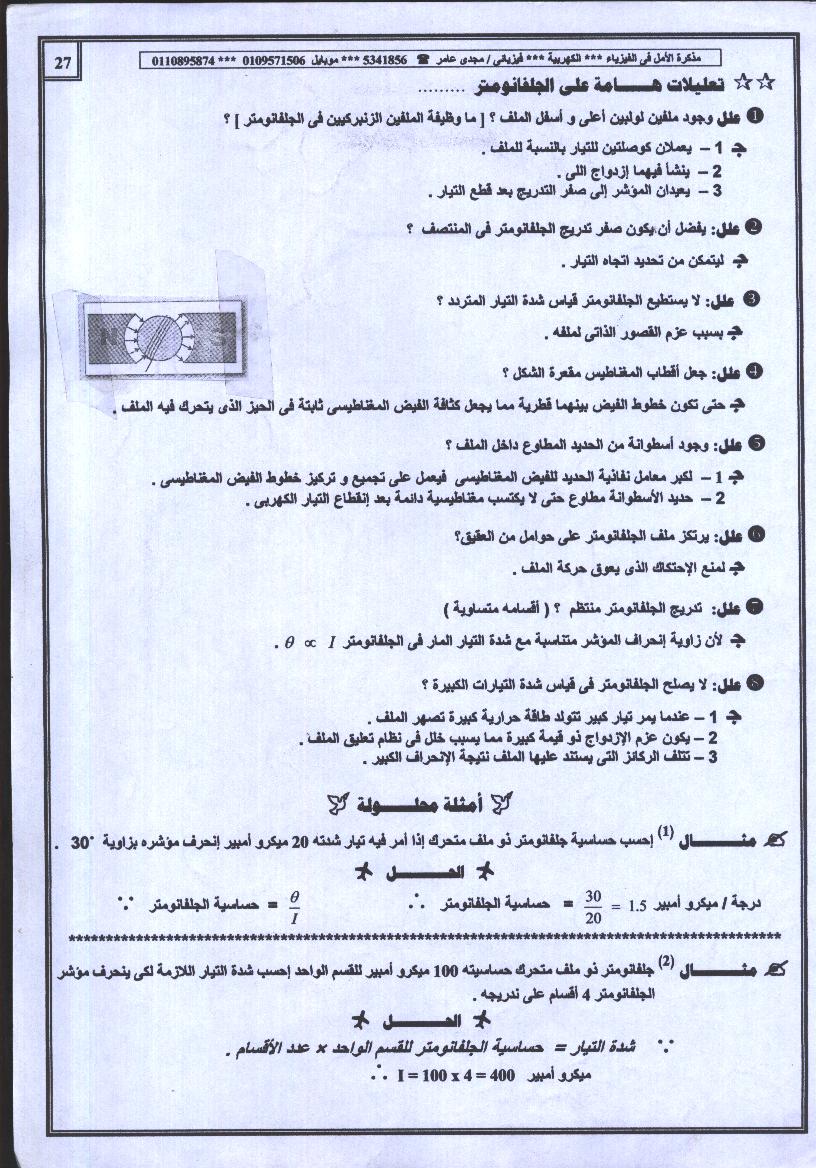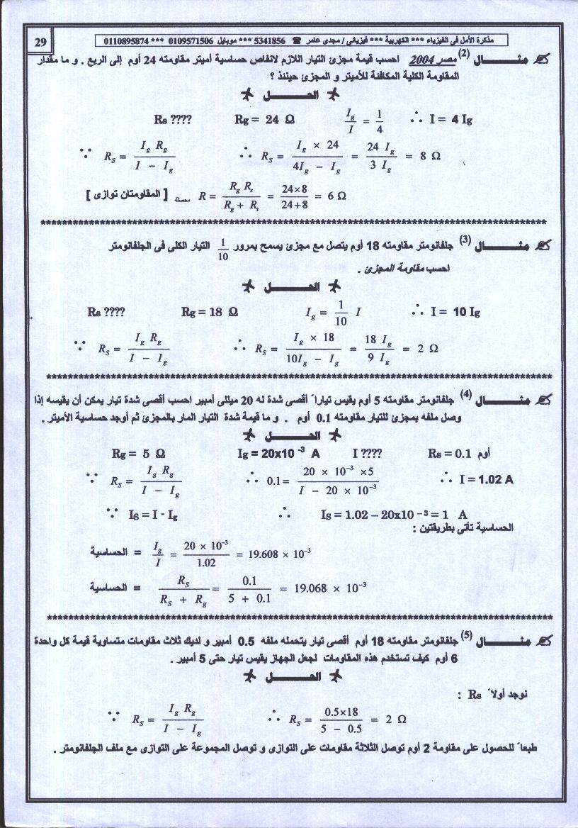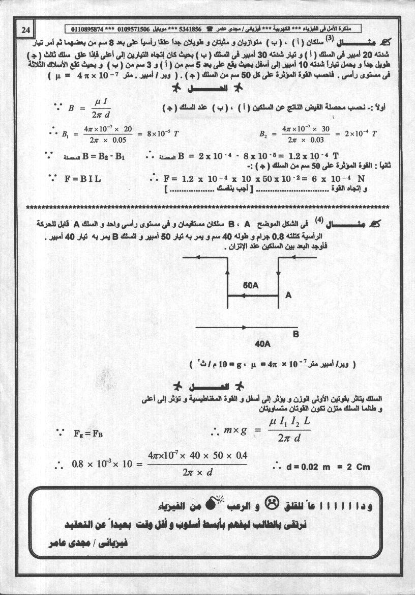 ملزمة الأمل لشرح منهج الفيزياء لثالثة ثانوى الفيزيا الكهربائية الجزء الثاني