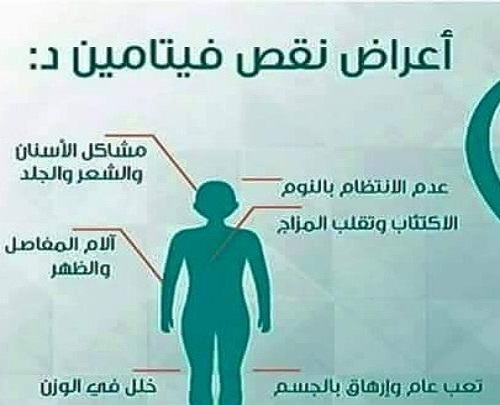 § الشمس هى المصدر الرئيسى لفيتامين د ، يجب التعرض لأشعة الشمس حتى يكتسب الجسم الفيتامين مرة أخرى، وخصوصا من الساعة 10 صباحا حتى 3 عصرا.