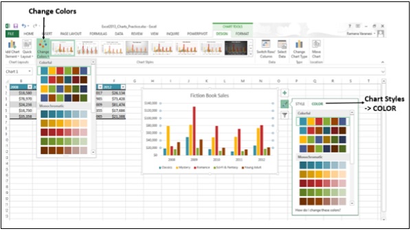 يكون خيار تغيير الألوان (Change Colors) هو نفسه الموجود في عناصر المخطط (أدوات← تغير النمط ← الألوان)