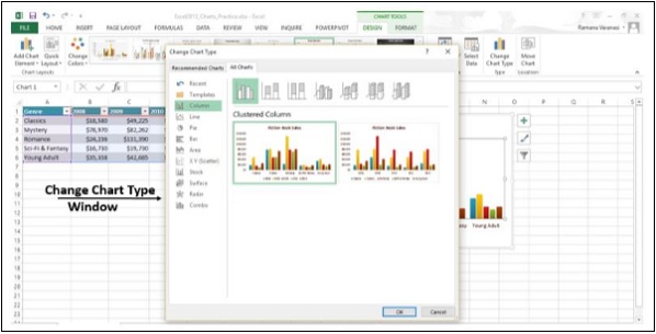 الخطوة ١ - انقر على نافذة "تغيير نوع الرسم البياني" (Change Chart Type) لتظهر لديك
