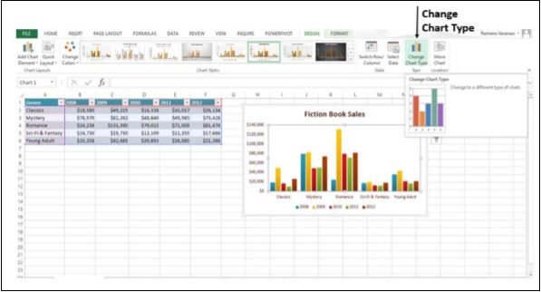 الخطوة ٣ - انقر على الرسم البياني الذي تريده. سيتم عرض المخطط مع التخطيط المختار.