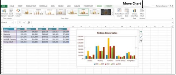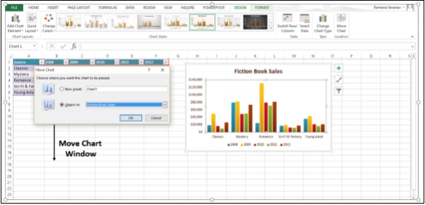 انقر على "نقل الرسم البياني" (Move Chart) . فسوف تظهر نافذة "نقل الرسم البياني" (Move Chart)