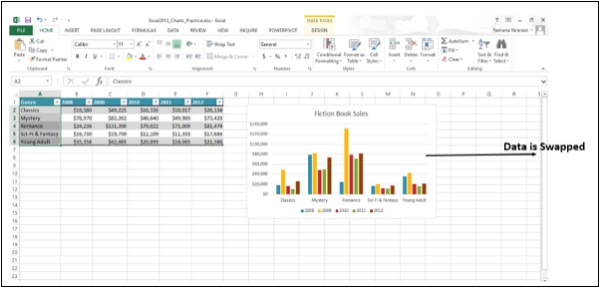 يمكنك استخدام زر "تبديل الصف / العمود" (Switch Row/Column) الموجود على الشريط لتغيير عرض البيانات من محور X إلى محور Yوالعكس بالعكس. اتبع الخطوات التالية لفهم ذلك: