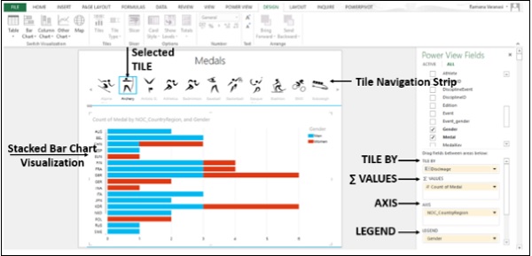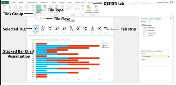 القوالب (Tiles) عبارة عن حاويات بها شريط تنقل ديناميكي. يمكنك تحويل جدول أو مصفوفة أو مخطط إلى تجانب لعرض البيانات بشكل تفاعلي. تعمل المربعات على تصفية المحتوى داخل القالب (Tiles) إلى القيمة المحددة في شريط علامات التبويب. يمكنك الحصول على قالب (Tiles) واحد لكل قيمة حقل محتملة بحيث إذا قمت بالنقر فوق هذا المربع ، يتم عرض البيانات الخاصة بهذا الحقل.