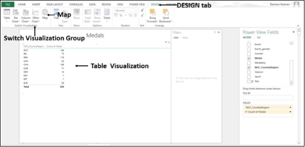 الخطوة 4 - انقر فوق "الخريطة" (Map) في مجموعة تبديل التصورات (Switch Visualization).