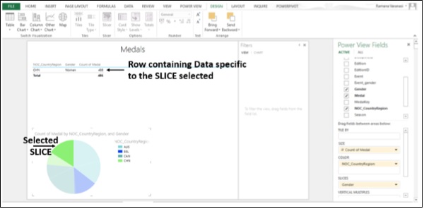 الآن ، بواسطة الشرائح "SLICES" ، يمكنك تصور عدد الميداليات للرجال والنساء في كل بلد.